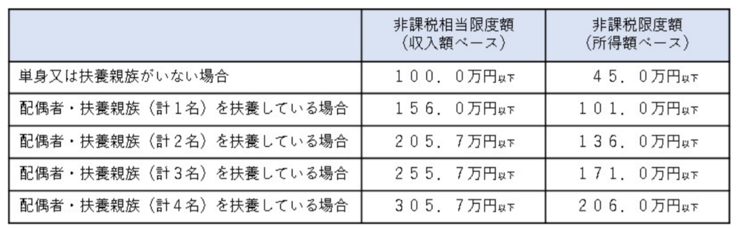 なお、非課税相当額の水準についても、目安が示されておりましたので、下表を参照ください。