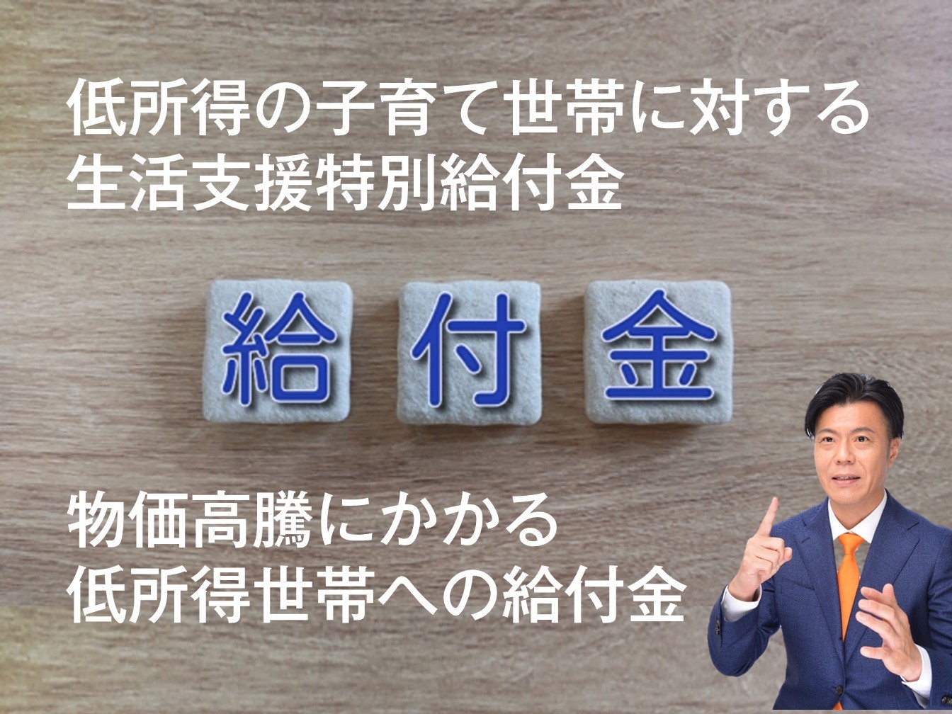一つが「低所得の子育て世帯への児童一人あたり5万円の給付金」、もう一つが「物価高騰対策としての低所得世帯への3万円の給付金」です。