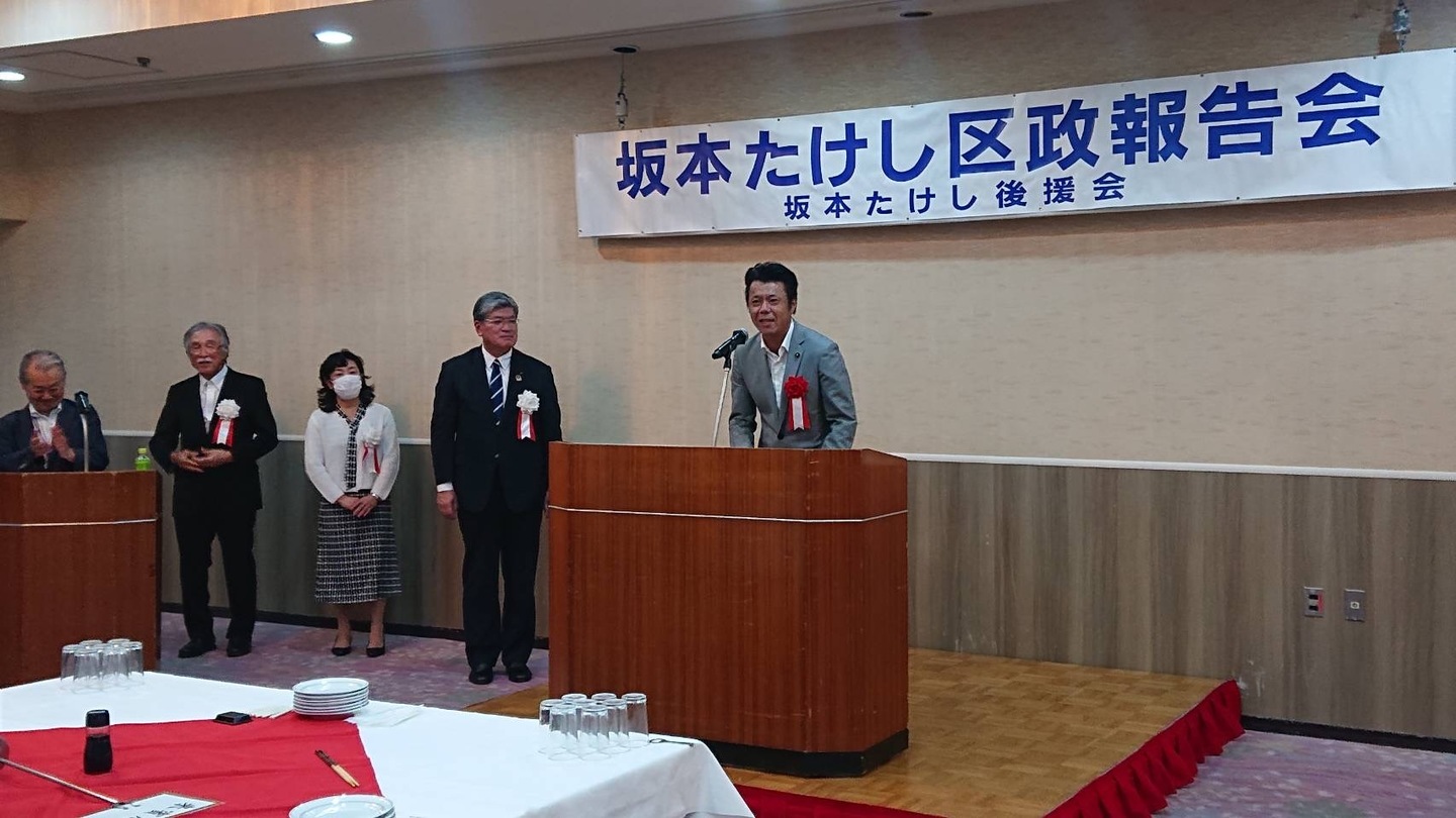 5期目の当選を果たした坂本健区長の区政報告会が、昨日7/10に開催されました。