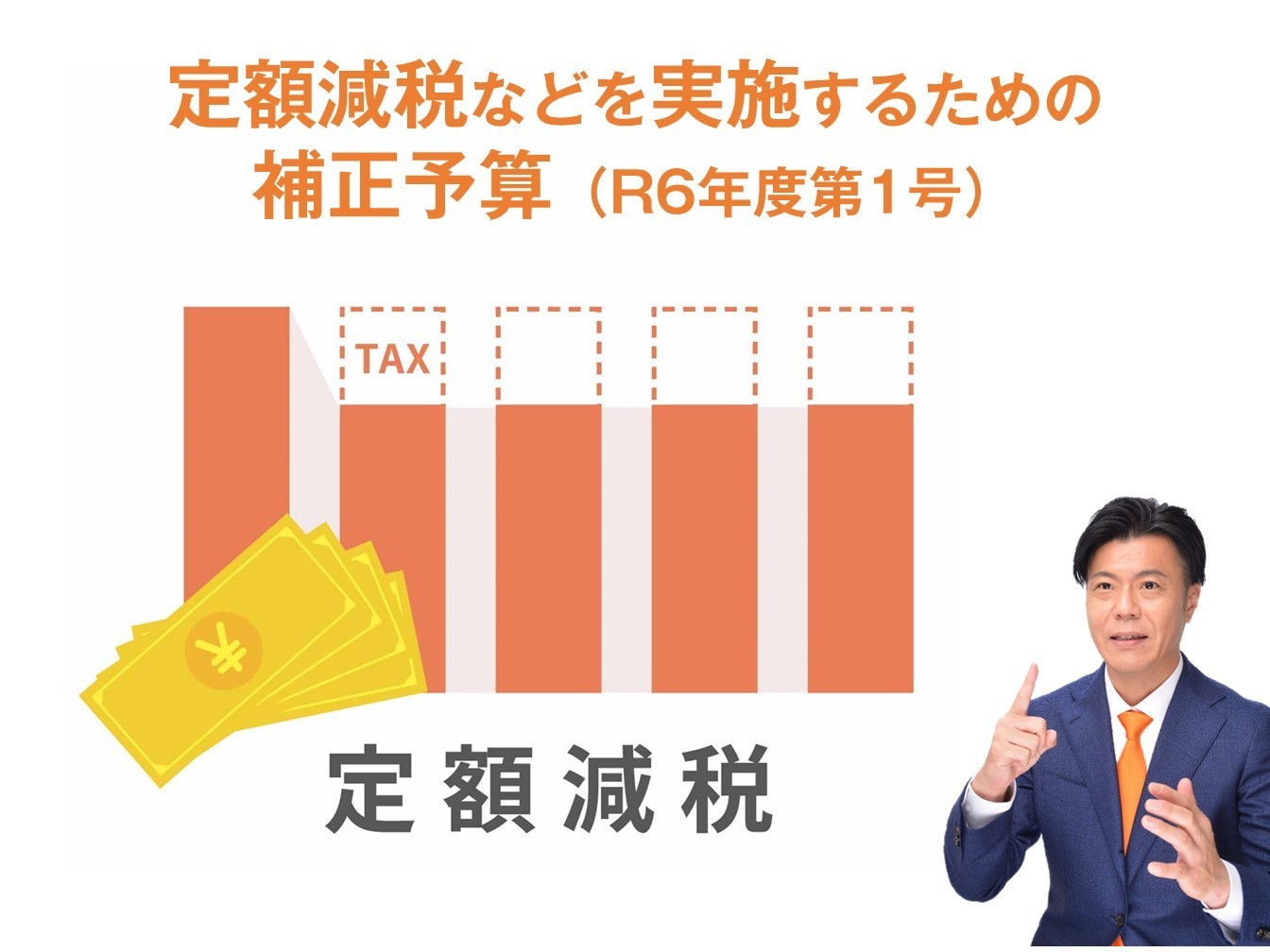 本日は定額減税などを実施することに伴う財源を確保するための補正予算について報告をします。今回の補正額は60億1,000万円で、補正後の一般会計の予算総額は2,590億1,000万円となるものです。