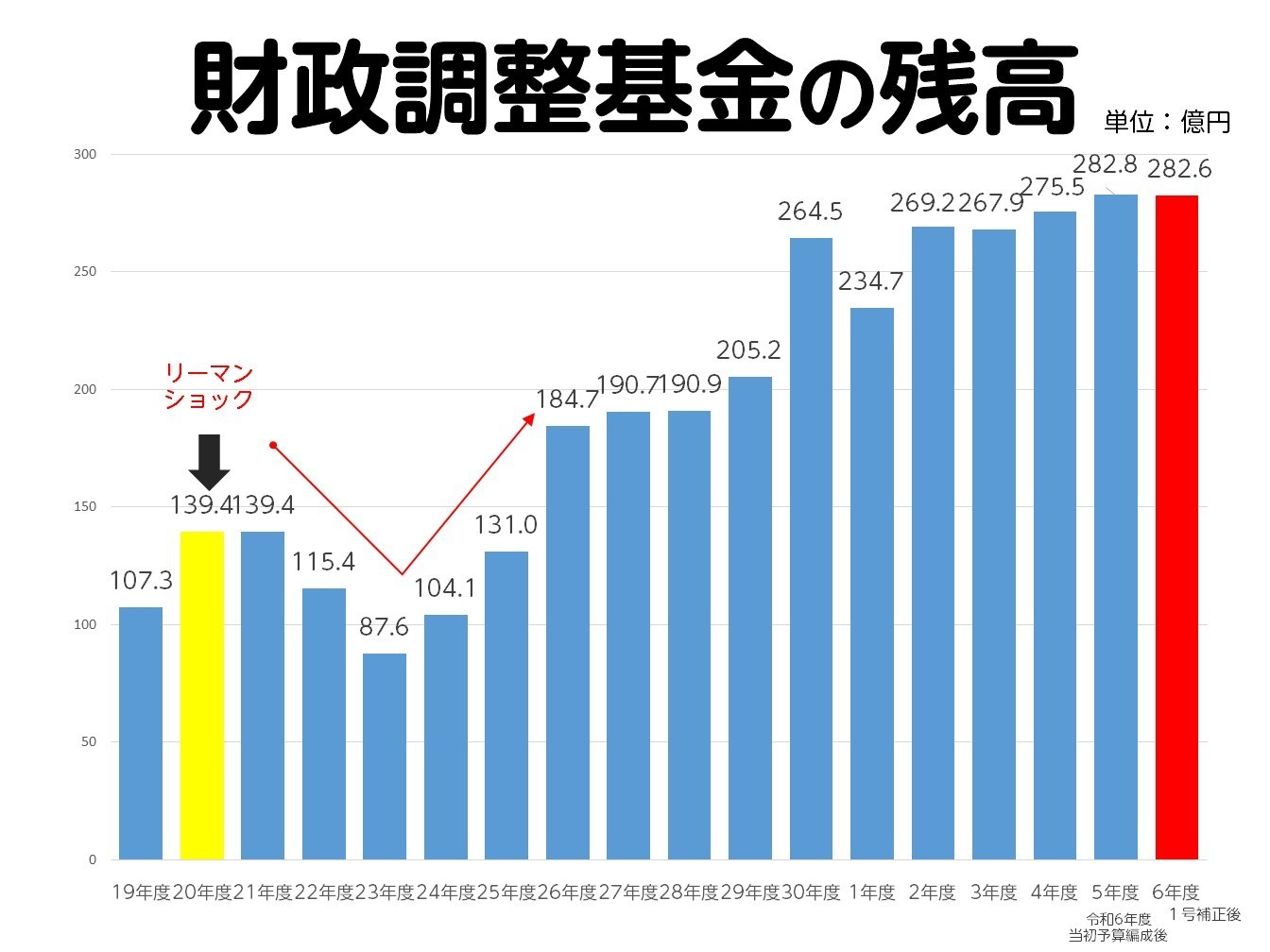 最後になりますが、今回の補正予算後の財政調整基金の残高は「282億6,528万円」となります。