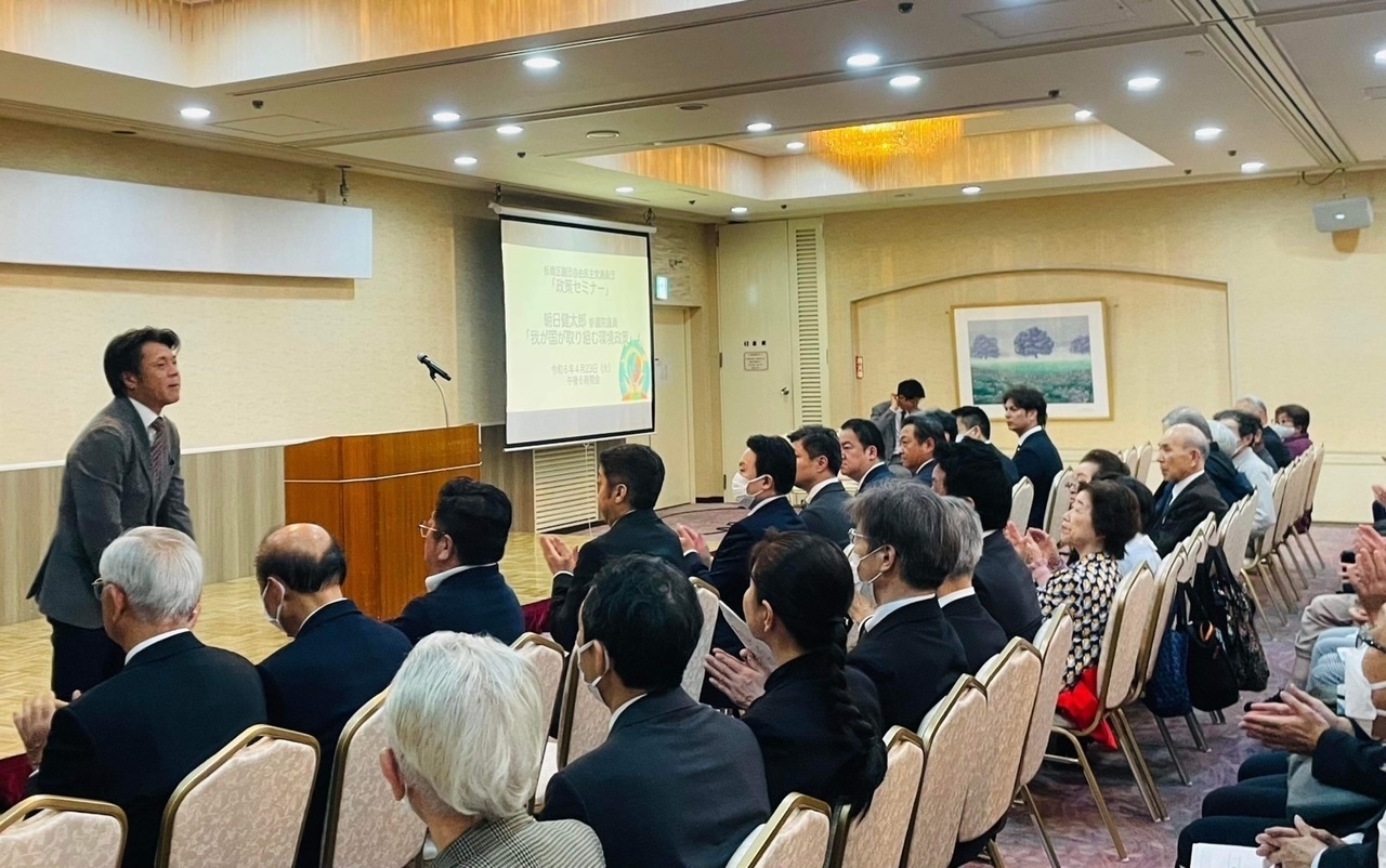朝日健太郎参議院議員は現在、環境大臣政務官を務めており、我が国が取り組み環境政策というテーマで政経セミナーをありました。