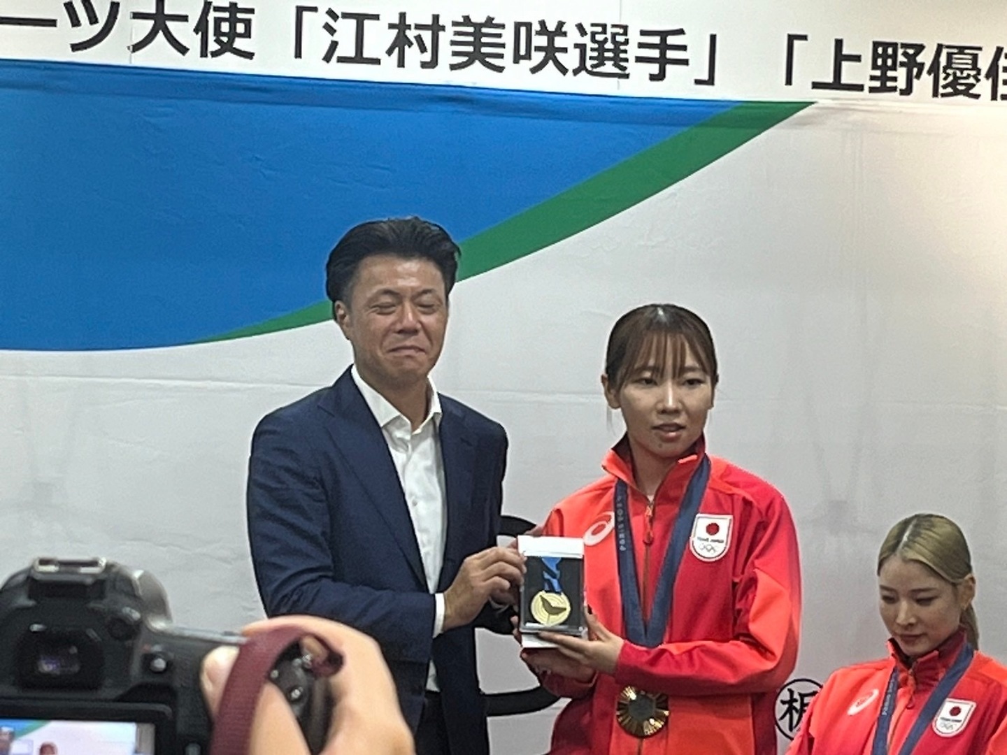 【板橋区】フェンシング競技の「江村美咲さん」・「上野優佳さん」がメダルとともに板橋区を訪問