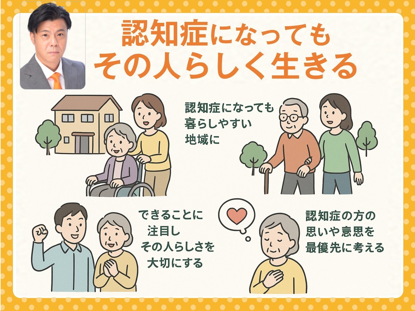 認知症は特別な病気ではありません。誰にでも起こりうる脳の変化として受け止め、認知症になってもならなくても、すべての人が尊厳を持って生きることができる認知症フレンドリー社会が求められていると感じています。
