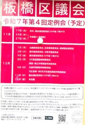 板橋区議会の第4回定例会が11月17日に公示され、年末に向けた重要な審議が始まりました。