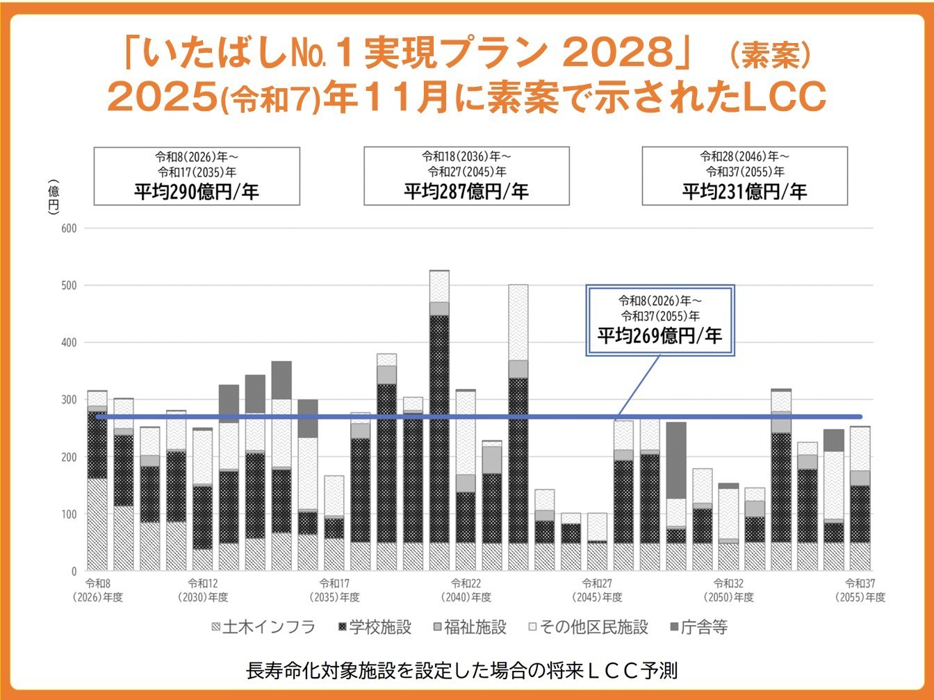 なお、その後に開かれた企画総務委員会において、区からはNo.1プラン2028・実施計画(素案)が示され、今後の最新のLCCも「平均269億円/年」と提示されました。やはり上昇傾向が続いています。